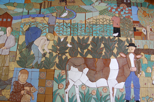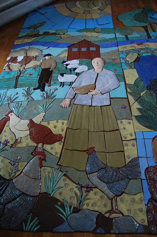 J udith is currently working on a public mural for the town square project in Rockville, Maryland. The photographs show parts of the mural after they’ve been fired in a kiln and glazed. Some of these tiles may be glazed a second time, to deepen the color. Installation of the mural will start in September 2009.